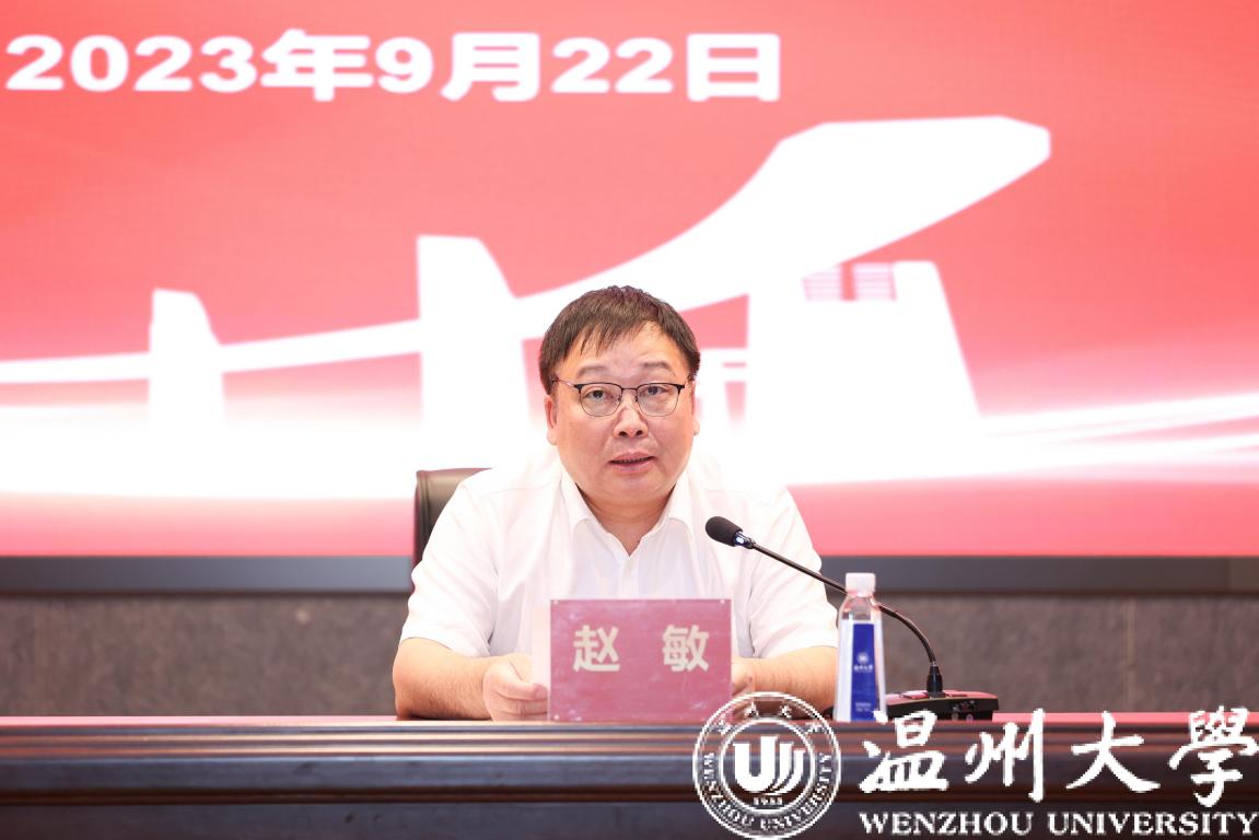 9月22日下午,溫州大學召開學習貫徹習近平新時代中國特色社會主義思想主題教育第一期讀書班研討交流會。校黨委副書記、校長趙敏主持會議并作點評講話。全體校領導、中層干部參加會議,省委主題教育第三巡回督導組副組長陳建勛、市委組織部干部三處副處長周曉燕等到會指導。