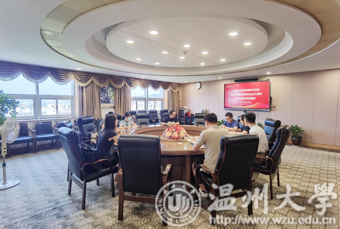 2023年9月20日下午,溫州大學華僑學院召開學習貫徹習近平新時代中國特色社會主義思想主題教育部署會。會議由華僑學院黨支部書記包含麗主持,學院全體黨員參加會議。