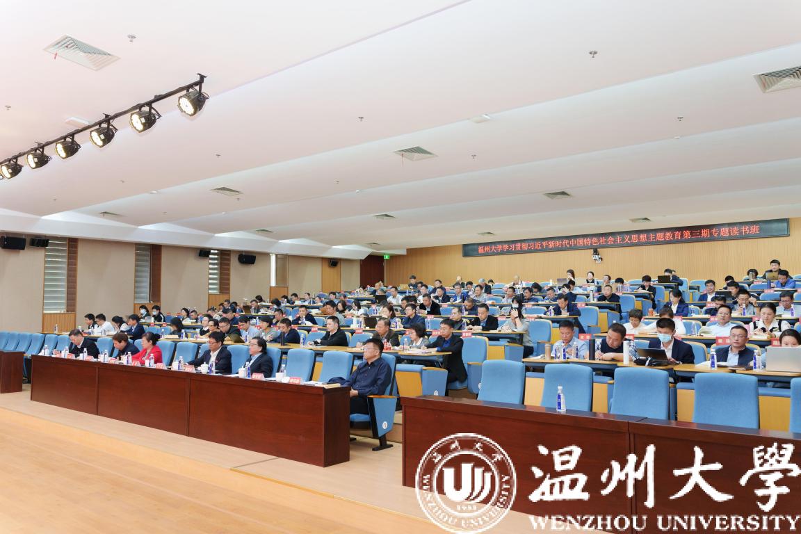 11月27至28日,溫州大學舉辦學習貫徹習近平新時代中國特色社會主義思想主題教育第三期讀書班,以專題輔導、集中自學、觀看紀錄片、研討交流等形式,進一步深入學習貫徹習近平新時代中國特色社會主義思想特別是習近平總書記考察浙江重要講話精神,認真貫徹落實省委十五屆四次全會精神,推動各項工作落實。