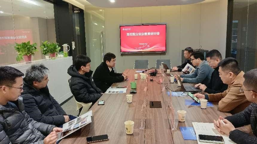 On the afternoon of February 11th, in order to further promote the integration of employment guidance and innovation and entrepreneurship education with professional education in universities, a seminar on employment and entrepreneurship education in universities organized by Zhejiang Zhejiao Group Co., Ltd. was held at our university. Leaders from companies such as Zhejiang Zhejiao Group, Ziqian International, Cying World, Xinwu Education, as well as deans and teachers from entrepreneurship colleges of Wenzhou University, Wenzhou Medical University, Wenzhou University of Technology, Wenzhou Business College, and Zhejiang College of Security Technology attended the meeting.