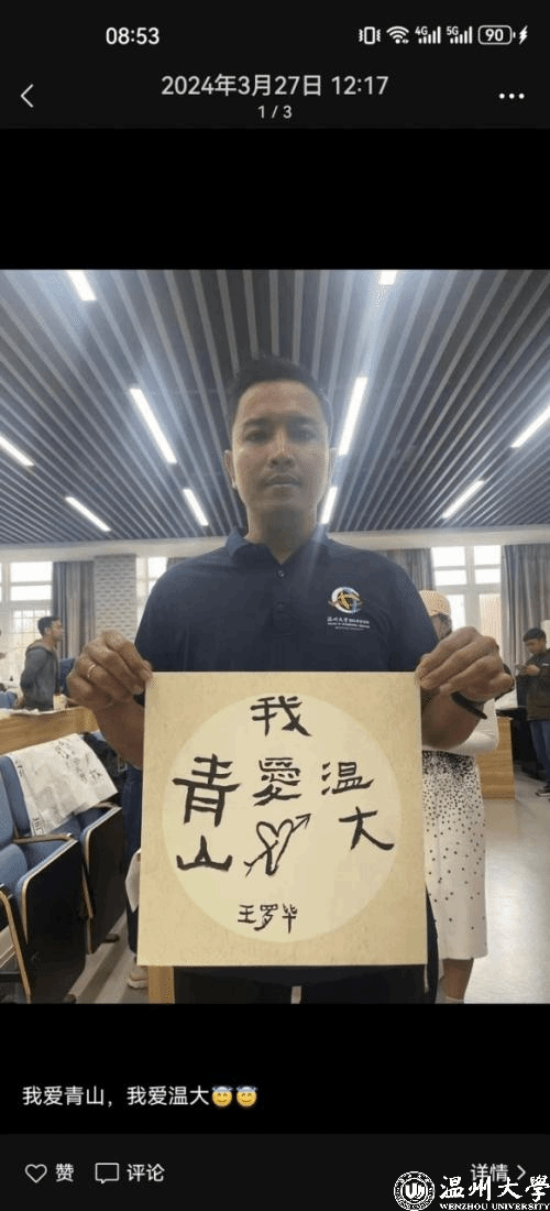 The speech by the first batch of students, Andrew, at the graduation ceremony is a glimpse of this. He shared, "This study has not only improved the Chinese proficiency of the students but also allowed us to feel the unique charm of Chinese traditional culture and personally experience the magnificent rivers and mountains and beautiful scenery of China." When finishing the first month of studying in Wenzhou, WANG Luobi posted a personal photo holding paintings and calligraphy works on his WeChat Moments, with the caption "I love Tsingshan, I love Wenzhou University," expressing gratitude.