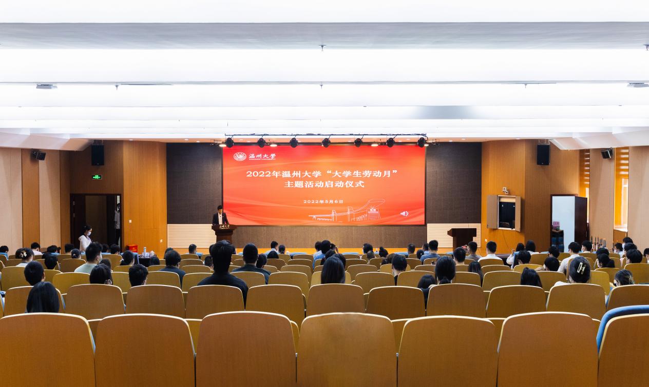 來源: 發布時間:2022-05-13 瀏覽次數:次為進一步落實立德樹人根本任務,推動勞動教育實踐,促進“三全育人”綜合改革,5月6日下午,以“喜迎二十大 奮進新征程 勞動建新功”為主題的2022年溫州大學“大學生勞動月”主題活動啟動儀式在南校區巖松堂步青廳順利舉辦,校黨委副書記莊興忠、學工部部長張敏、后勤管理處處長蔡加依、校團委書記易招娣、教務處副處長夏遠志,各學院分管書記、團委書記及學生代表出席此次啟動儀式,學工部副部長王壯主持會議。