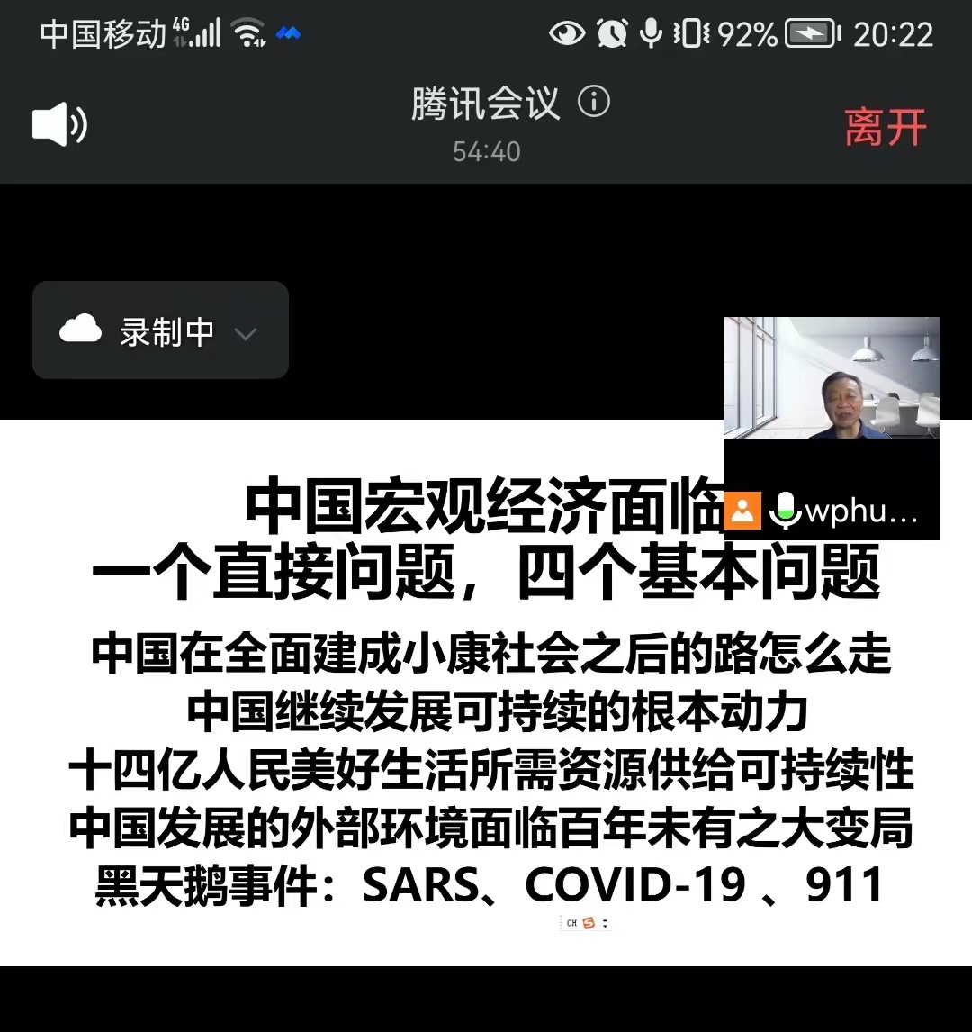 講座信息量豐富、思路清晰、視野開闊、見解獨到。溫州大學商學院師生、溫州大學華人華僑研究學者、特約金融機構高管、中國人民大學世界經濟研究中心博士團隊、中國人民大學部分校友共計100余人參加了本次線上線下講座。