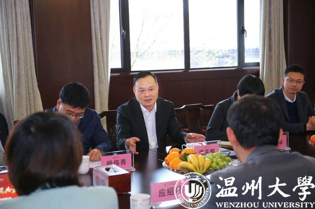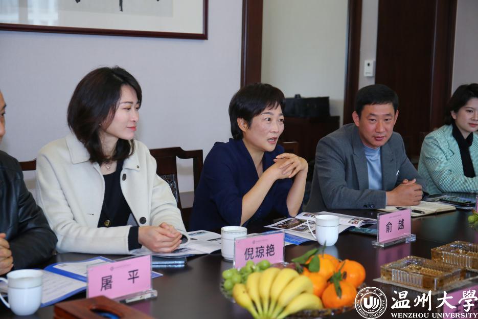 潘玉駒副校長介紹了溫州大學(xué)辦學(xué)歷史沿革,近年來在黨建思政、學(xué)科建設(shè)、人才培養(yǎng)、科研創(chuàng)新等方面的辦學(xué)成績,對浙江頤和和大健康產(chǎn)業(yè)投資有限公司的大力支持表示衷心感謝,體健校友秉持溫大校訓(xùn)精神,在各行各業(yè)取得的成績讓母校師生倍感自豪。俞越副主席充分點贊了溫州大學(xué)近幾年的辦學(xué)成果,希望校企雙方在原有基礎(chǔ)上,進一步增進了解、加強合作;浙江頤和董事長應(yīng)紹斌校友從自身成長經(jīng)歷出發(fā),感謝母校培養(yǎng),表示母校對其創(chuàng)業(yè)理想的塑造起到了至關(guān)重要的引領(lǐng)作用,未來將個人事業(yè)與母校發(fā)展緊密聯(lián)系,不斷為助力學(xué)子成才做出貢獻;諸暨慧佳頤和酈瓊?cè)憾麻L詳細介紹了企業(yè)的經(jīng)營現(xiàn)狀、運營模式、技術(shù)創(chuàng)新等方面的情況,雙方就產(chǎn)教融合、產(chǎn)學(xué)研合作、拓寬就業(yè)渠道、共同促進畢業(yè)生高質(zhì)量就業(yè)等方面展開深入交流。