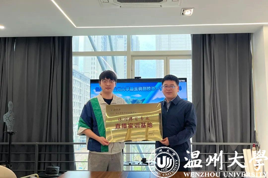 潘玉駒副校長為麗水快手直播基地方面進行了溫州大學(xué)就業(yè)實習(xí)基地授牌。體育與健康學(xué)院黨委書記楊偉青為柳挺校友授休閑體育專業(yè)直播實訓(xùn)基地牌。體育與健康學(xué)院黨委副書記王曉華為柳挺頒發(fā)校友導(dǎo)師聘書。