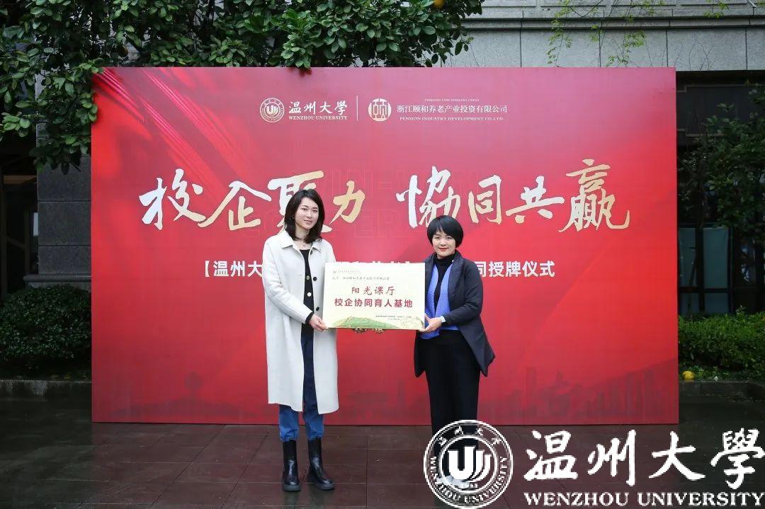 潘玉駒副校長為浙江頤和養(yǎng)老產(chǎn)業(yè)投資有限公司方面進行了溫州大學(xué)就業(yè)實習(xí)基地授牌。體育與健康學(xué)院黨委書記楊偉青為應(yīng)邵斌董事長頒發(fā)校友育人導(dǎo)師聘書,以期借力企業(yè)資源、深度助力我院三全育人。體育與健康學(xué)院黨委副書記王曉華代表溫州市陽光課廳體育思政·體育思政(協(xié)同育人)工作室為浙江頤和養(yǎng)老產(chǎn)業(yè)投資有限公司教育產(chǎn)業(yè)部總經(jīng)理倪瓊艷授牌,旨在推進校企協(xié)同育人,創(chuàng)新合作模式。