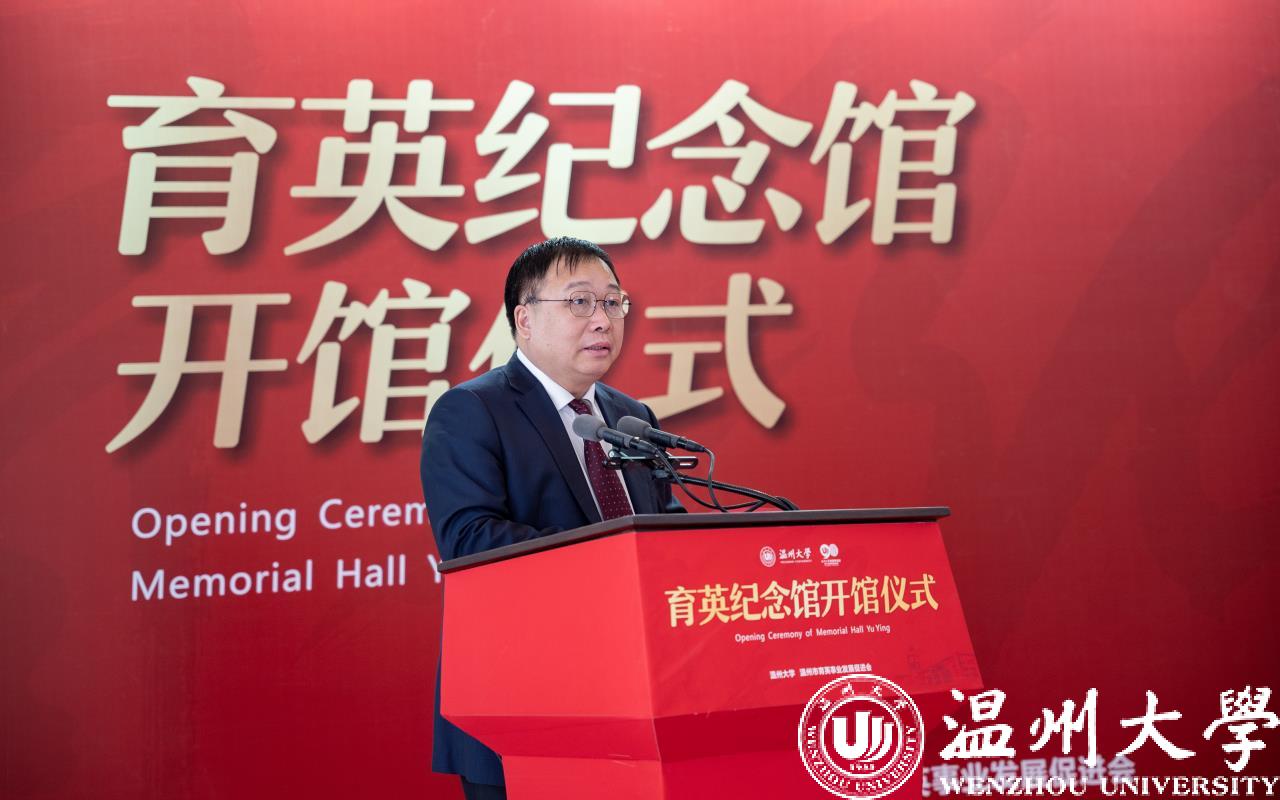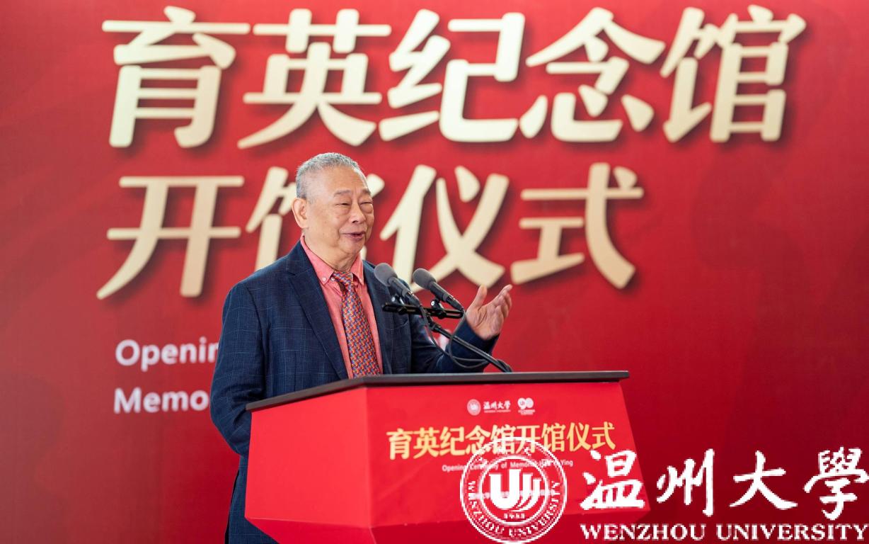 趙敏致辭。他介紹了何朝育先生與夫人何黃美英女士愛(ài)國(guó)愛(ài)鄉(xiāng)、造福桑梓的事跡,對(duì)何氏家族為溫州大學(xué)作出的貢獻(xiàn)表示感謝。他表示,育英紀(jì)念館將成為傳承弘揚(yáng)“育英精神”的有效載體,將極大推動(dòng)社會(huì)公益慈善事業(yè)蓬勃發(fā)展。學(xué)校也將以此為契機(jī),將育英紀(jì)念館打造成為溫大學(xué)子弘揚(yáng)“育英精神”的新地標(biāo),教育引領(lǐng)溫大師生積善成德、向善而行。