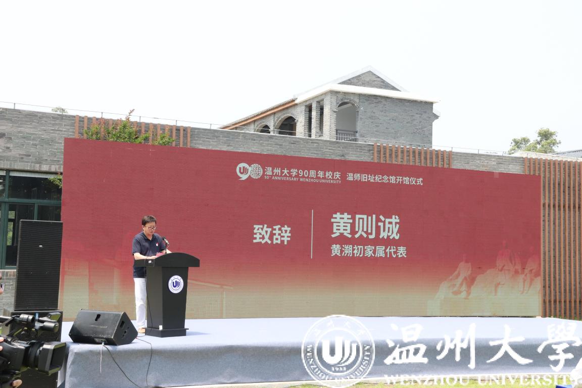 黃則誠代表黃溯初家屬發(fā)表致辭。他深情回憶了黃溯初先生傾資興學、教育為懷的義舉,詮釋了溯初先生“國家興亡,匹夫有責”的精神品質(zhì)。他表示,作為黃溯初先生的后人,將繼承發(fā)揚先輩對家鄉(xiāng)綿長又扎實的大愛,這份大愛必將薪火相傳,生生不息。并對平陽以及溫州大學的發(fā)展提出了美好祝愿。